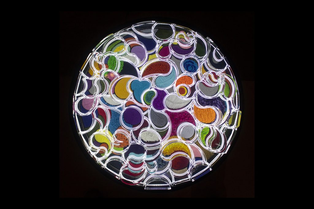 Exposición conformada por más de 20 obras tridimensionales compuestas de plexiglass, luces, espejos, textiles y otros materiales que simulan un juego de sombras y reflejos oníricos y fantásticos, como una suerte de caleidoscopio con formas plenas de la imaginación de la artista. La obra tiene un movimiento inusitado en el que juega con la abstracción geométrica, además de ser una exploración del espacio, la profundidad y la simetría para generar efectos ópticos que engañan al ojo creando una sensación de movimiento y libertad. Cada pieza es una composición compleja de miles de formas, repetitivas e interconectadas que se unen para crear patrones geométricos llenos de color que generan efectos ópticos.