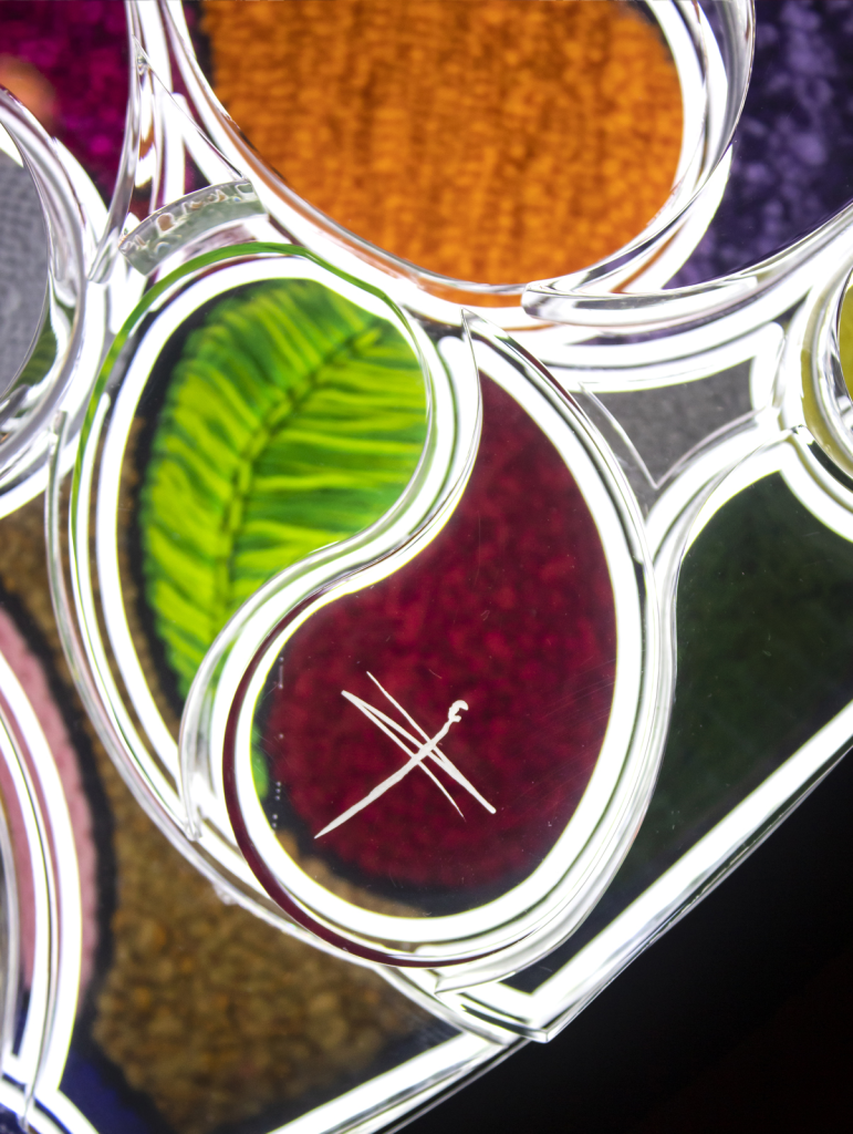 Caleidosfera es una cautivadora exploración de formas, color y luz en una esfera que irradia patrones bordados y coloridos. Esta obra invita a una profunda reflexión sobre la percepción y la perspectiva, al hacernos notar cómo nuestras perspectivas evolucionan con cada enfoque. La obra nos invita a explorar las múltiples formas que emergen al modificar el punto de vista. Con cada giro se desvelan nuevas revelaciones visuales, destacando la maleabilidad de la realidad y la riqueza de la percepción, similar a un caleidoscopio. En última instancia, la obra nos invita a contemplar las infinitas formas de ver y entender el mundo.