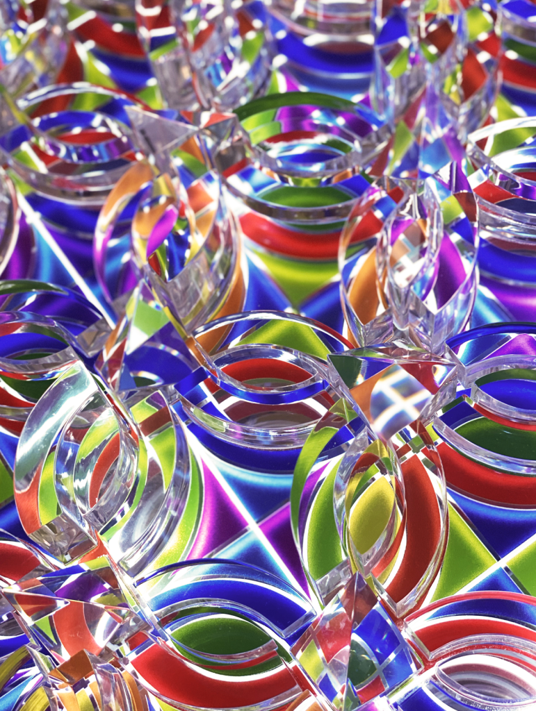 En «Círculo Entrelazado», busco explorar la profunda interconexión que subyace en nuestras relaciones sociales y su reflejo en el simbolismo de la forma geométrica del círculo. Este trabajo no solo es una representación visual, sino también un recordatorio de la intrincada red de vínculos que nos unen como seres humanos. El círculo, como forma elemental y universal, evoca la idea de totalidad y unidad. Al entrelazar múltiples círculos en esta composición, quiero transmitir la idea de que nuestras vidas están entrelazadas de manera inextricable. Cada círculo representa a un individuo, y la superposición y conexión entre ellos simbolizan las relaciones interpersonales que formamos a lo largo de nuestras vidas.