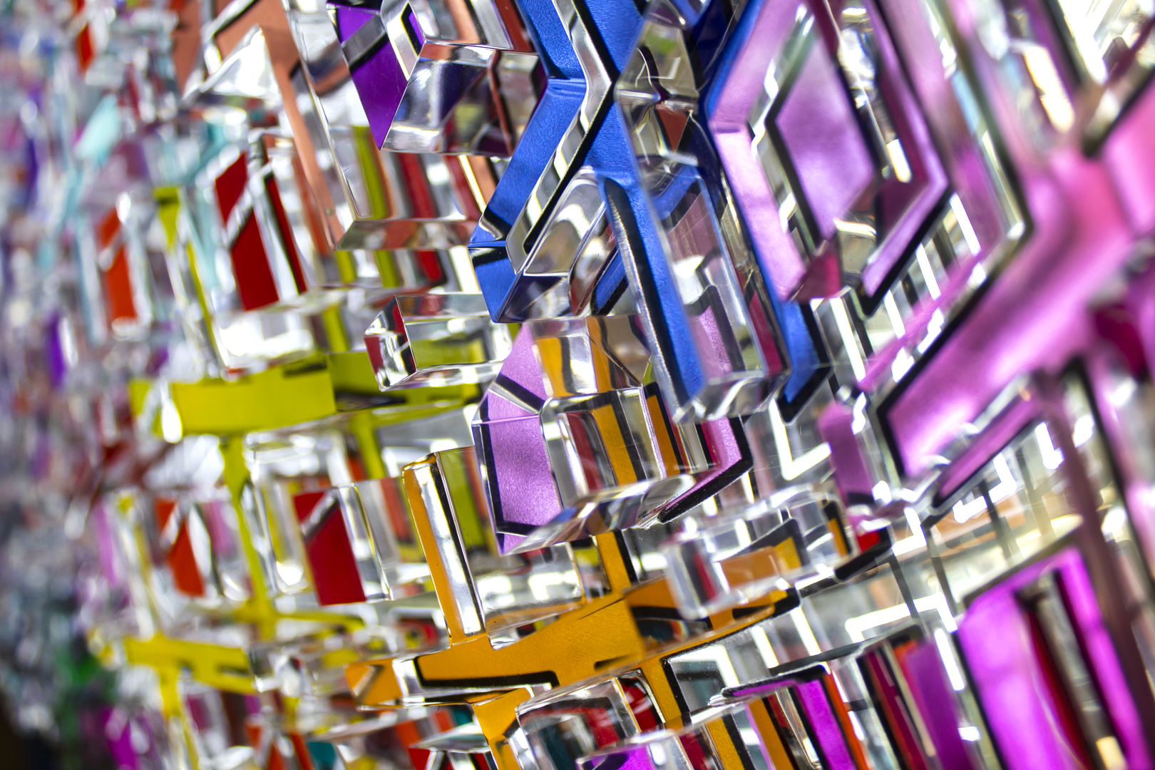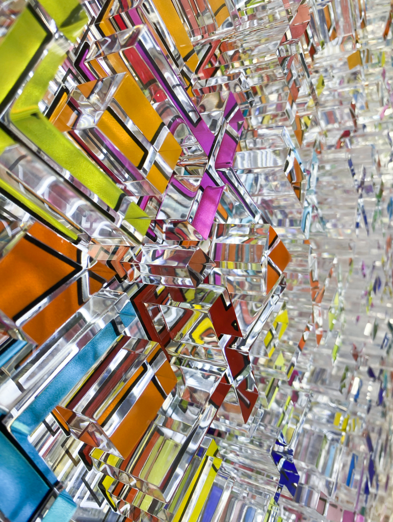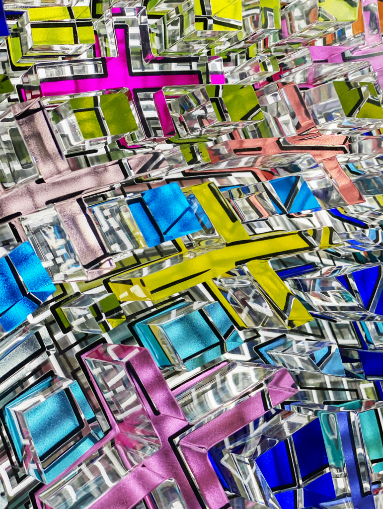 En «City Lights», mi intención es capturar la vibrante energía y el dinamismo de una ciudad moderna a través de una interpretación visual. Esta pieza fusiona la técnica del relieve con la iluminación para crear una experiencia inmersiva que invita al espectador a sumergirse en un paisaje urbano lleno de vida y color. Utilizando las piezas en diferentes alturas, he construido una representación tridimensional de una ciudad en constante movimiento, en la que cada pieza forma parte de una topografía urbana que se eleva ante el espectador. La disposición cuidadosamente calculada de estas piezas no solo proporciona una sensación de profundidad y perspectiva, sino que también genera un juego de luces y sombras que cambia según el ángulo desde el cual se observe la obra. La luz agrega una dimensión adicional, infundiendo la ciudad con una luminosidad que evoca la energía de la vida. El espejo refleja y amplifica los colores, creando un efecto caleidoscópico que intensifica la sensación de movimiento y actividad. «City Lights» es un homenaje a la belleza caótica y la vitalidad de la vida urbana. A través de la combinación de técnicas escultóricas y elementos lumínicos, mi objetivo es transportar al espectador a un mundo donde los colores danzan y las formas cobran vida, invitándolos a explorar y descubrir la magia que se esconde en el corazón de la ciudad.