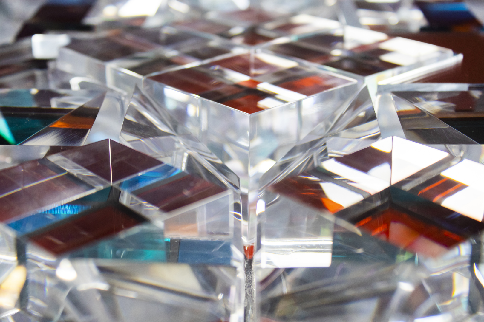 Destello sutil es una obra que forma un espacio de belleza efímera creada por la luz, el reflejo de los materiales y los colores. Este juego visual invita a sumergirse en una experiencia única e inmersiva, donde la percepción esta en constante movimiento y cada destello devela una nueva faceta del mundo abstracto que emerge ante nuestros ojos. Estos destellos sutiles se general a través del juego del plexiglass con la luz y el color, lo que nos invita a ser espectadores activos, a movernos y buscar nuevas perspectivas hasta descubrir otros angulos que transformen nuestra percepción.