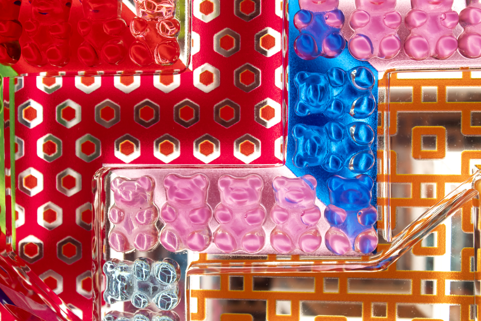 En la obra «Escalada de Sueños» cada escalón ascendente representa un peldaño hacia la materialización de aspiraciones y deseos, un ascenso hacia metas más elevadas. Algo especial que caracteriza esta pieza es la presencia de ositos de acrílico de diferentes colores. A lo largo de la escalada, los ositos representan la esencia de la niñez, recordándonos la simplicidad, la imaginación desbordante y la felicidad pura que caracterizan ese periodo de la vida. Cada osito, con sus colores vibrantes y las texturas, son como un recuerdo dulce, testigos silenciosos de nuestros momentos más tiernos y alegres, que nos guían con su presencia lúdica mientras ascendemos hacia lo desconocido. La obra se convierte así en una exploración no solo de los objetivos personales y las metas ambiciosas, sino también de la conexión con la inocencia perdurable que llevamos con nosotros en nuestro ascenso vital. En esta amalgama de escalones y ositos, la pieza invita a reflexionar sobre la dualidad entre la búsqueda de logros y la preservación de la chispa eterna de la infancia, fusionando la escalada hacia el futuro con la presencia reconfortante de nuestros recuerdos más queridos.