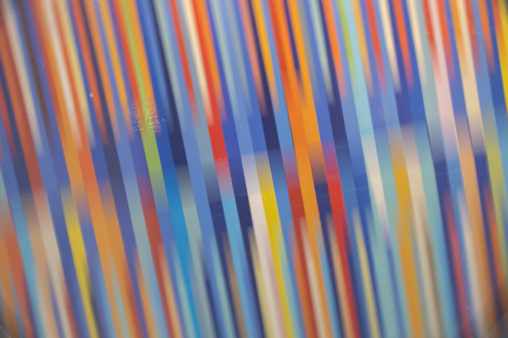 «Reflejo Cromático» explora cómo los colores y formas se reflejan y amplifican entre sí, como en un espejo caleidoscópico. La obra trata sobre la transformación, mostrando cómo las repeticiones geométricas generan nuevas combinaciones de color y forma a partir de elementos simples.