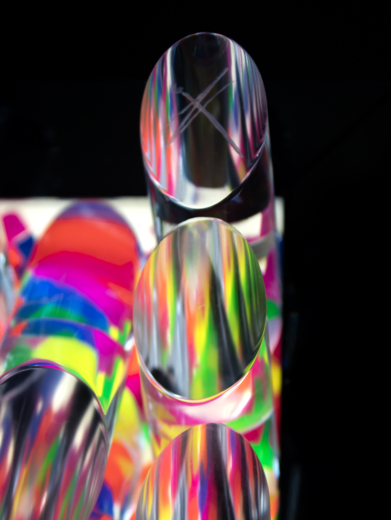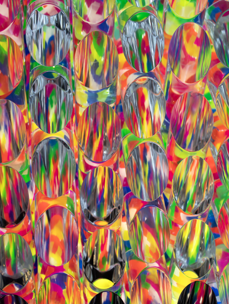 Las cruces simétricas, formadas por tubos de plexiglás, representan no solo una armonía matemática, sino también la coexistencia equitativa de elementos dispares. Este patrón simétrico actúa como un recordatorio visual de cómo la vida y la creatividad se encuentran en la intersección de contrastes yuxtapuestos. Iluminadas con una luz etérea, las cruces simétricas actúan como faros, guiando a través de la complejidad y representando la posibilidad de encontrar equilibrio interno.