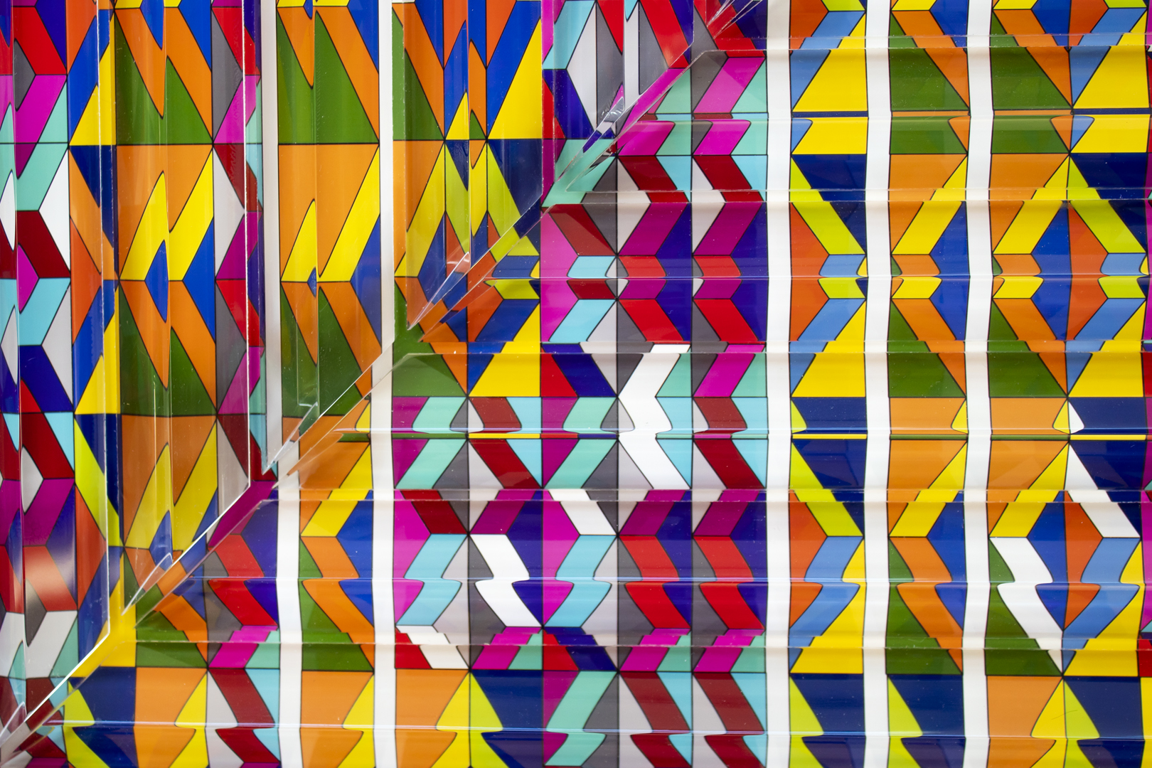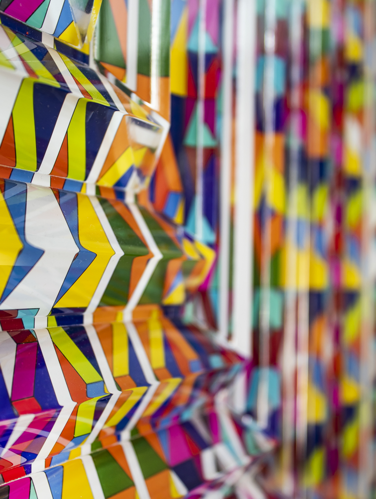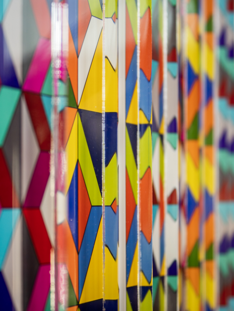 «Sucesión Lineal», es una indagación visual que reflexiona sobre los ciclos perpetuos de creación y destrucción que moldean nuestra experiencia humana. En el centro de esta exploración yace un rombo que actúa como el epicentro de una secuencia lineal que se despliega en capas sucesivas. La obra presenta una desconfiguración audaz y una ruptura secuencial de la forma. Esta disrupción deliberada desafía un patrón previamente establecido, creando una alteración visual que cuestiona lo ya construido. Las formas y tonalidades se desdoblan en un proceso dinámico que sugiere un viaje a través del cambio y la reconstrucción. A través de esta obra, busco capturar la esencia misma de los procesos creativos y destructivos que dan forma a nuestro mundo. Al explorar la interacción entre orden y reorientación, entre estabilidad y transformación.